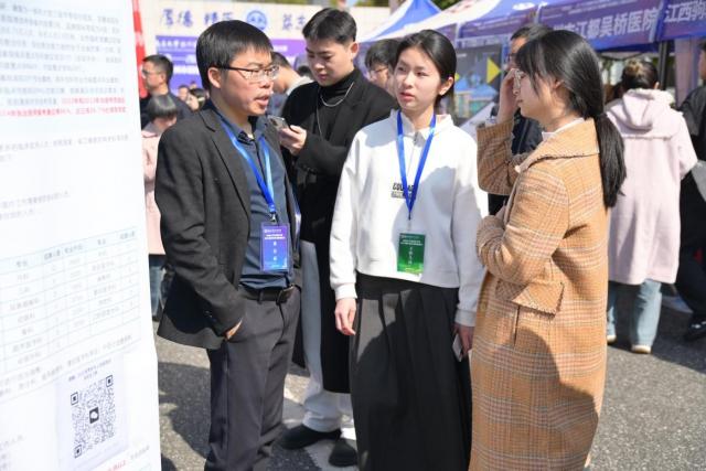 据悉,本次春季校园双选会为2025年全国城市联合招聘高校毕业生(江西)春季专场活动之一,由省教育厅、省人力资源和社会保障厅指导,市人力资源和社会保障局、市教育体育局、市卫生健康委员会、南昌大学抚州医学院联合主办,市就业创业服务中心和学院就业之家承办。来自北京、上海、浙江、福建、广东等省市和省内各地的220余家医疗卫生机构、生物医药与医疗器械研发生产企业、教育科研机构、健康咨询机构等用人单位参会,提供近4000个就业招聘岗位,吸引了1500余名学生参加。