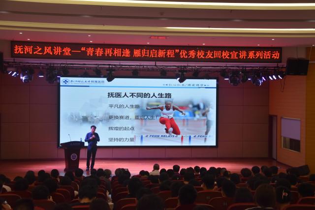 本网讯 春风化雨育桃李,雁归抚医启新程。5月17日上午,学院抚河之风讲堂(第七期)暨优秀校友回校宣讲活动(第二期)在办公楼多功能报告厅举行。