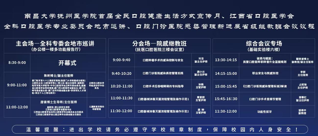 本次活动规模盛大,设一个主会场与两个分会场,议程安排合理,内容覆盖口腔前沿技术、医院感染控制规范、护理实践操作及口腔医师职业发展等多个口腔医学核心领域。