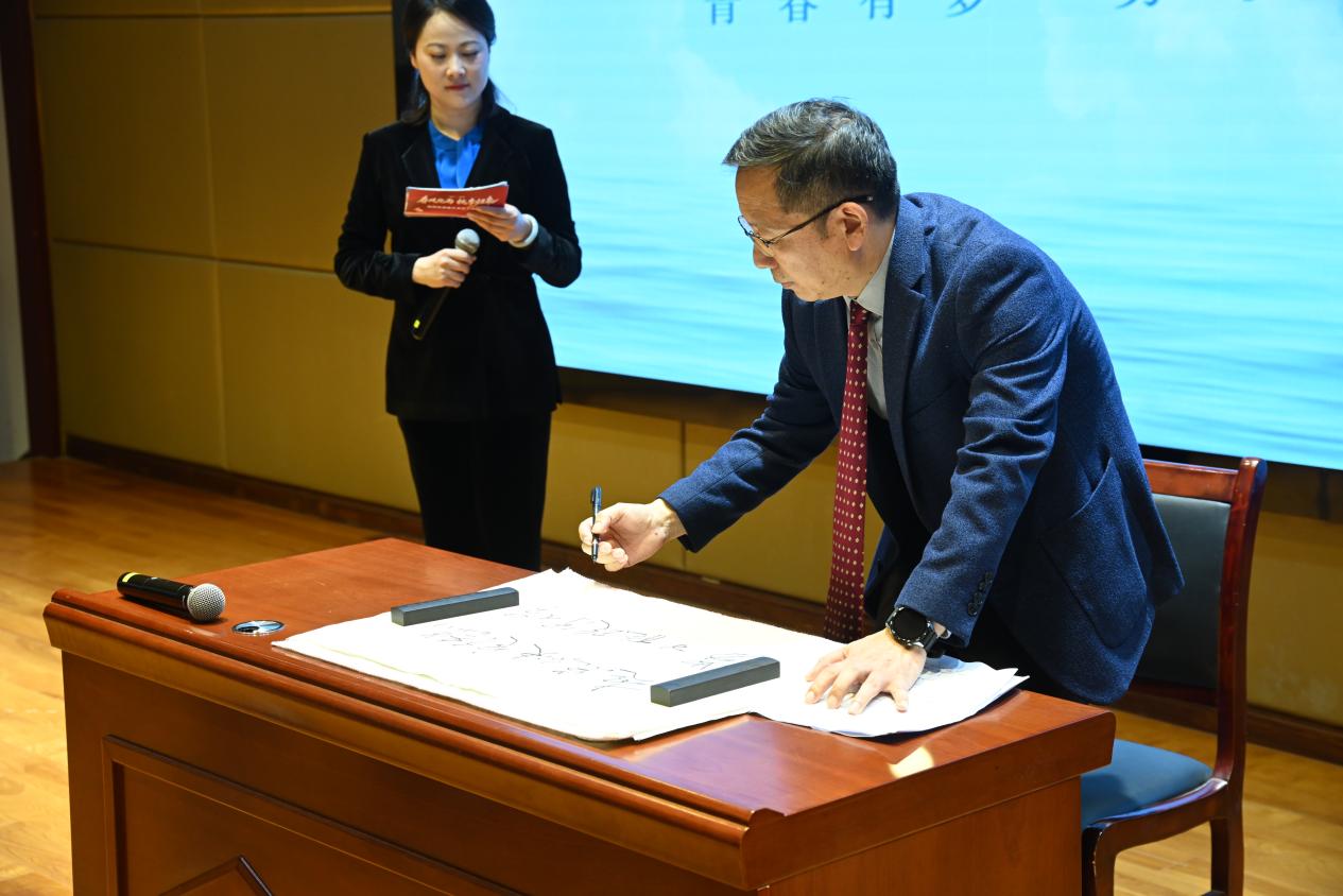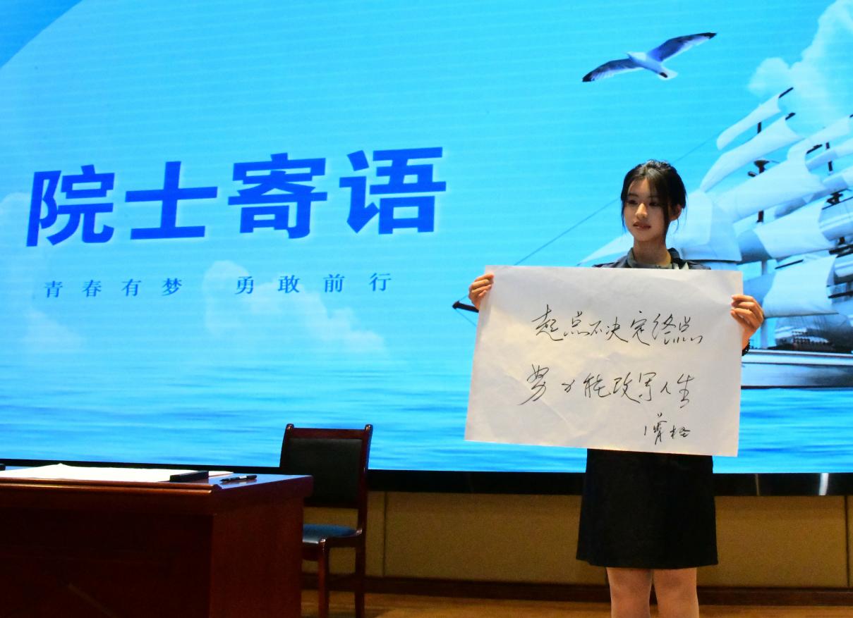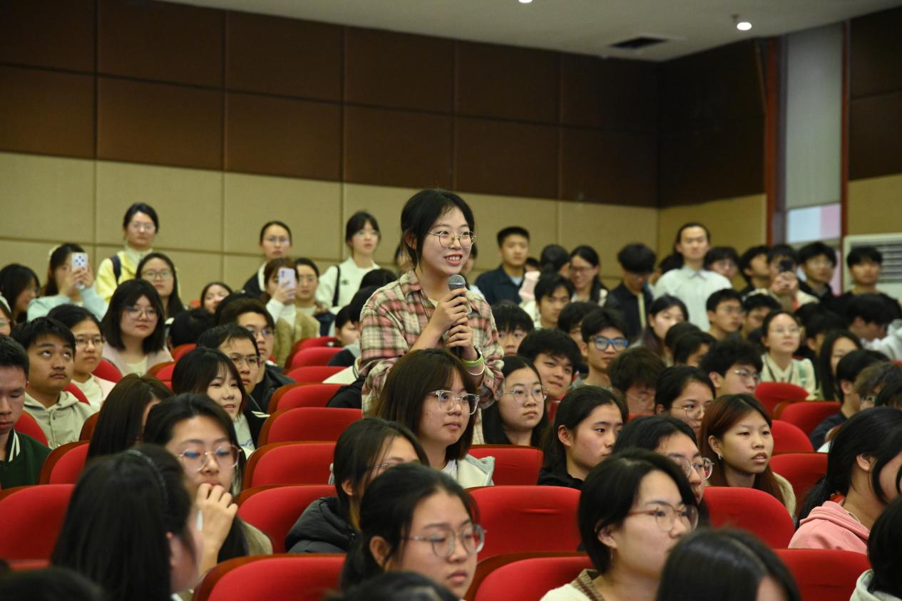 在互动交流环节,现场气氛热烈,青年学子满怀崇敬与热忱,踊跃提问、积极交流。曾木圣院士向全院师生送上真挚祝福,并深情寄语后辈:“起点不决定终点,努力能改写人生!”